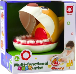 Jucărie amuzantă și educativă care îi familiarizează pe copii, într-un mod ludic, cu lumea stomatologiei. Datorită capului de cățel cu dinți detașabili și accesoriilor bogate, micii dentiști pot exersa periajul, examinarea și tratamentul. Oglinda iluminată, 8 dinți detașabili și instrumente realiste dezvoltă motricitatea fină, imaginația și obiceiurile corecte de igienă orală.