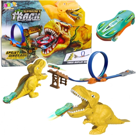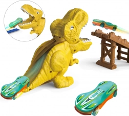 Pistă auto distractivă cu dinozaur și catapultă puternică oferă copiilor ore de acțiune și imaginație. Cu ajutorul rampei de lansare speciale, mașina prinde viteză, străbate pista și țintește direct spre gura dinozaurului. Culori vii, fără nevoie de baterii și control ușor fac din acest set jucăria ideală pentru micii piloți de curse.