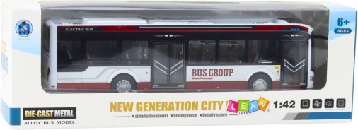 Autobuz urban metalic realist la scară 1:42 îi va entuziasma pe micii și marii fani ai transportului public. Datorită construcției solide din metal și plastic, cu uși care se deschid, trapă funcțională și efecte de lumină și sunet pe baterii, pare unul adevărat. Cu o lungime de 28,5 cm, este ideal atât pentru joacă, cât și pentru colecționare.