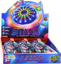 Discul UFO luminos este o jucărie atractivă pentru copii, care, după pornire, luminează camera cu LED-uri multicolore și le completează cu efecte sonore. Tematica spațială îi poartă pe cei mici în lumea aventurilor galactice și le susține percepția senzorială și imaginația.