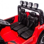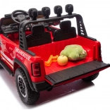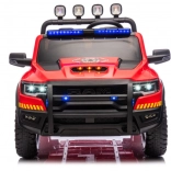 Pick-up-ul roșu stilat, în stil RAM, este ideal pentru micii pasionați de pompieri. Configurația cu două locuri și centuri de siguranță, cockpitul realist cu volan, pedală și panou media, precum și barele LED evidențiate de pe acoperiș transformă fiecare plimbare într-o misiune de salvare palpitantă. Roțile mari profilate și cadrul frontal de protecție asigură o deplasare stabilă și un aspect robust.