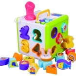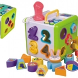 Acest cub de inserare este ideal pentru cei mai mici datorită culorilor sale vii și formelor diverse pentru inserare. Pe fiecare parte a cubului se află orificii destinate pentru inserarea formelor, literelor și cifrelor, ceea ce motivează copiii să învețe și să exploreze jucăuș lumea din jurul lor.