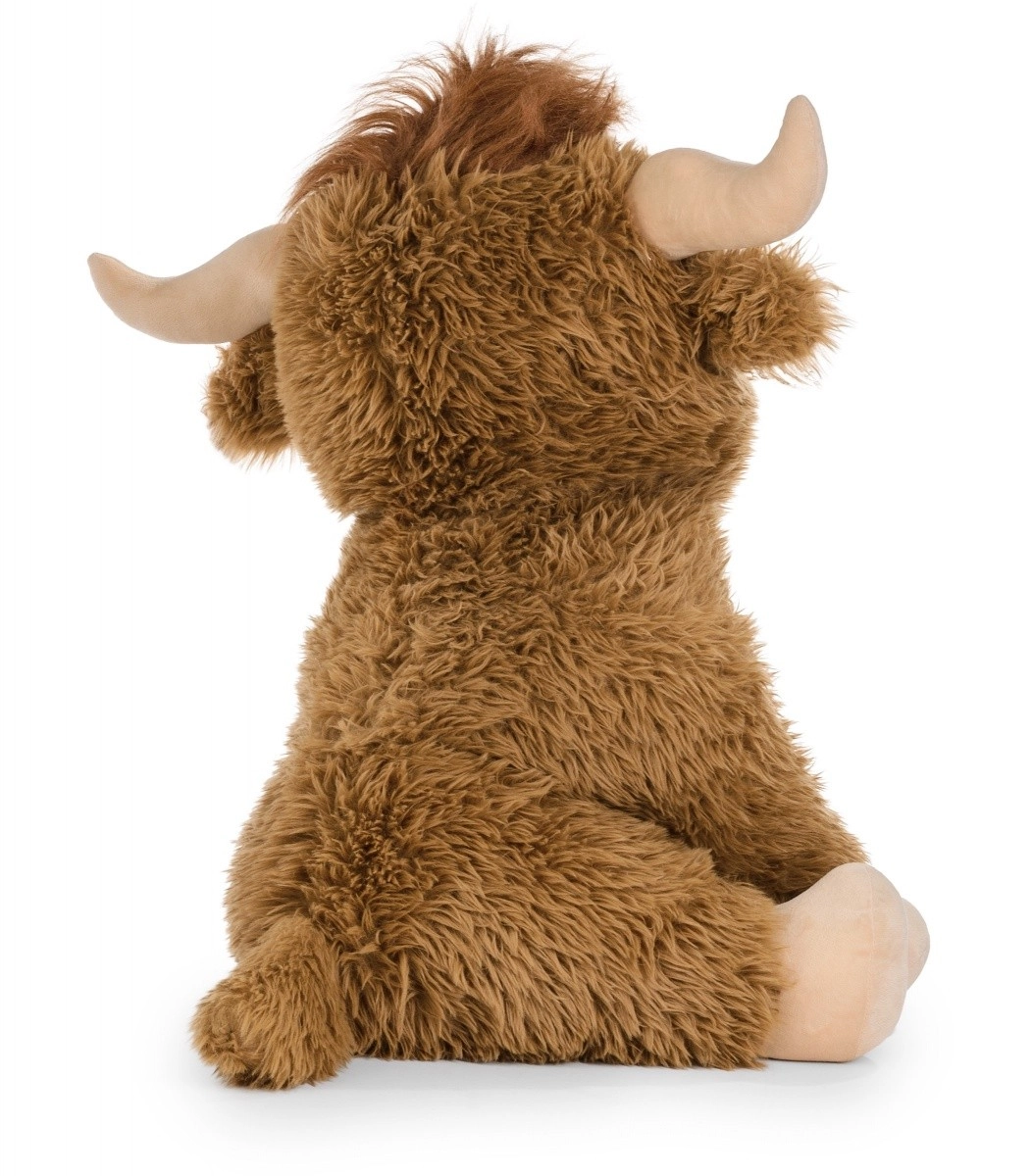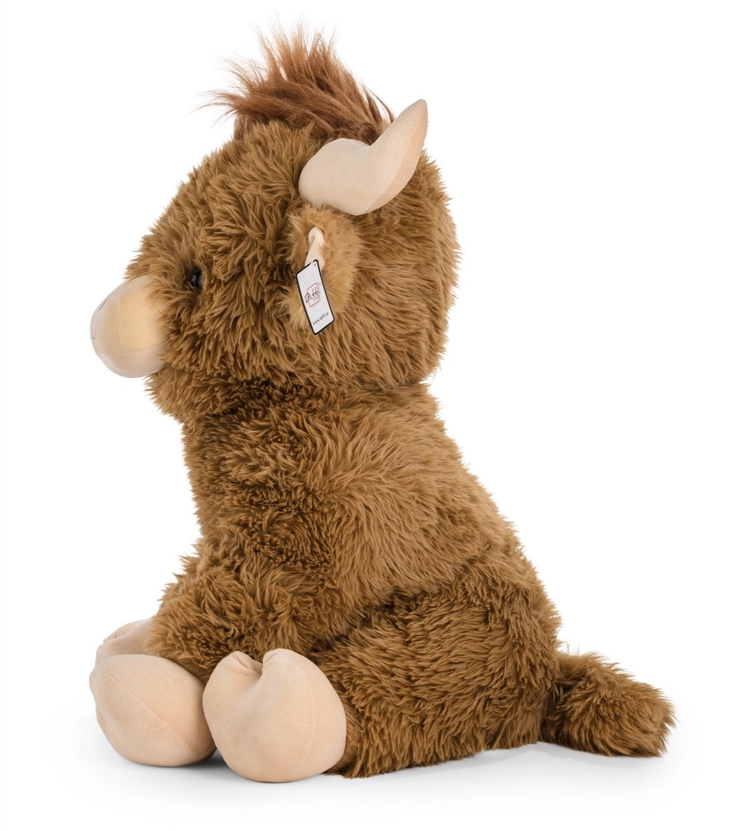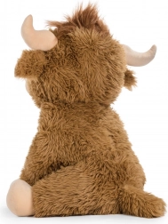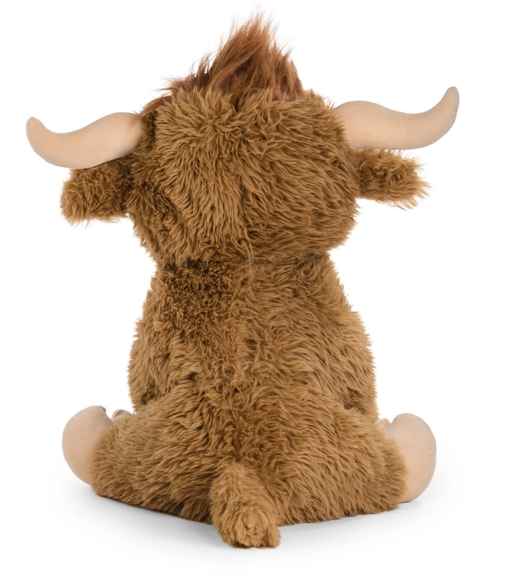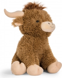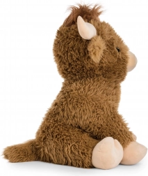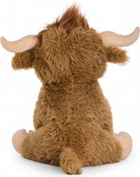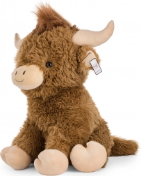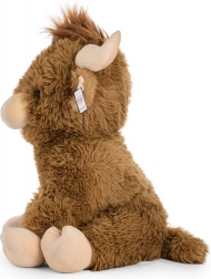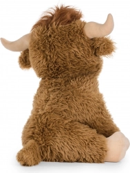 Această văcuță Highland din pluș atrage prin blana sa lungă și pufoasă, coarnele delicate și zâmbetul prietenos. Este realizată din material moale, catifelat, care te îmbie la îmbrățișat, și are o formă stabilă, șezândă, pentru a fi așezată ușor pe pat, raft sau canapea.