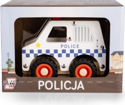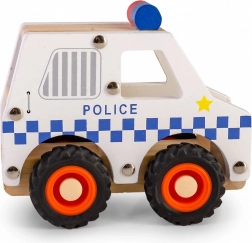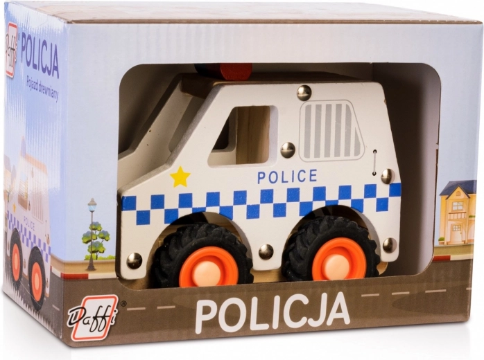 Mașina de poliție robustă din lemn, cu roți moi din cauciuc, oferă joc sigur și distractiv pentru copii. Este lăcuită cu vopsele sigure pentru sănătate, are marcaje de poliție vizibile și rulează lin pentru distracție push-and-go. Susține motricitatea fină, imaginația și jocurile de rol polițienești.