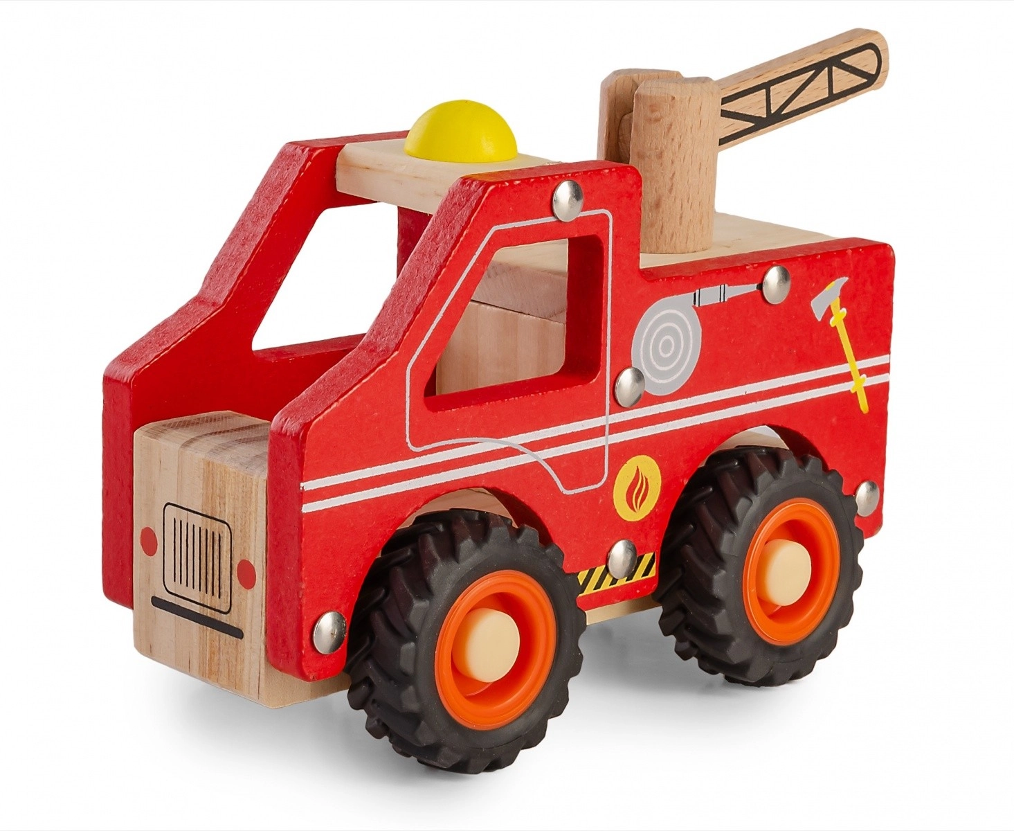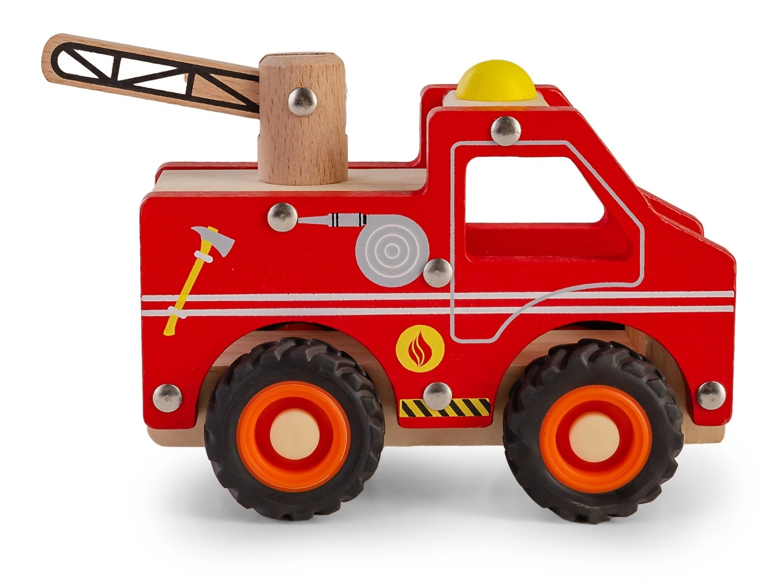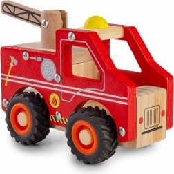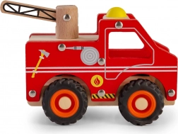 - mașină de pompieri din lemn, jucărie de împins
