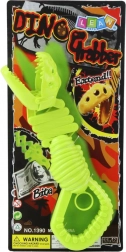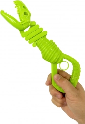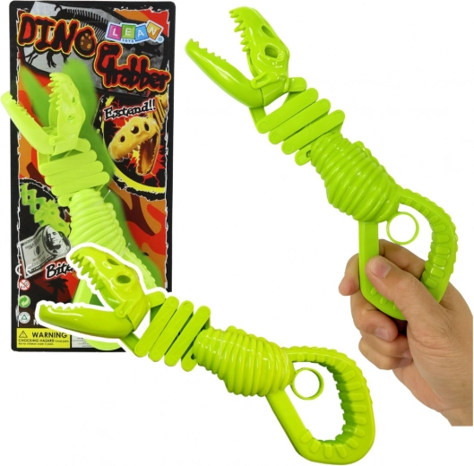 Jucărie distractivă și interactivă pentru copii – apucător verde în formă de schelet de dinozaur. La apăsarea mânerului, fălcile se închid și prind în siguranță obiectul, susținând motricitatea fină, coordonarea mișcărilor și jocul creativ. Fabricat din plastic rezistent pentru distracție îndelungată și sigură.