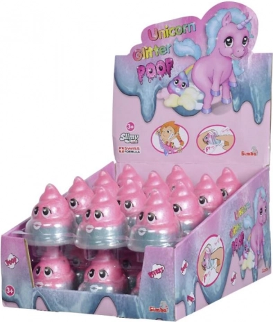 Slimy Unicorn slime pârâitor în pahar, efect sclipitor roz‑turcoaz. 80 g de distracție pentru copii și adulți. Cadou ideal, ambalaj display 24 buc.