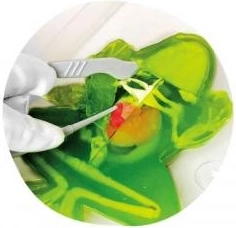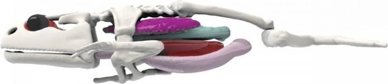Acest set educativ introduce elementele de bază ale anatomiei într-un mod jucăuș. În interior găsiți o broască de 16 cm cu organe și schelet redate realist, acoperite cu slime verde. Fiecare element poate fi ușor scos, examinat și pus la loc.