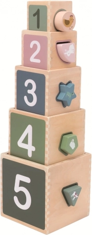 Copiii vor învăța într-un mod ludic numerele, formele și culorile, vor exersa denumirea animalelor de la fermă și își vor dezvolta creativitatea. Turnul este ușor de transportat și perfect atât pentru acasă, cât și pentru călătorii. Construcția de calitate din lemn asigură durabilitate și joacă în siguranță.