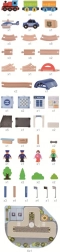 Această pistă de tren modernă din lemn, cu tematică urbană, le oferă copiilor tot ce au nevoie pentru ore întregi de joacă creativă. Setul include un tren albastru cu trei vagoane, șine variate, inclusiv un pasaj ridicat, și o gară spațioasă cu copertină. Nu lipsesc mașina de poliție, figurinele, semnele rutiere, lămpile, copacii și alte accesorii care creează atmosfera unui oraș adevărat.