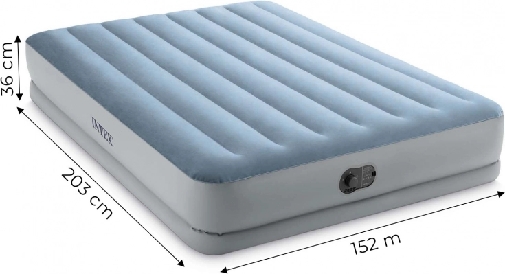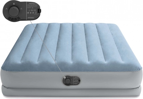 Salteaua gonflabilă INTEX este ideală ca pat temporar pentru oaspeți, pentru cabană sau călătorii. Construcția înălțată facilitează așezarea și ridicarea, în timp ce suprafața de velur este plăcută la atingere și previne alunecarea cearșafului. Pompa electrică integrată pregătește patul în aproximativ 3 minute și îl dezumflă la fel de repede.