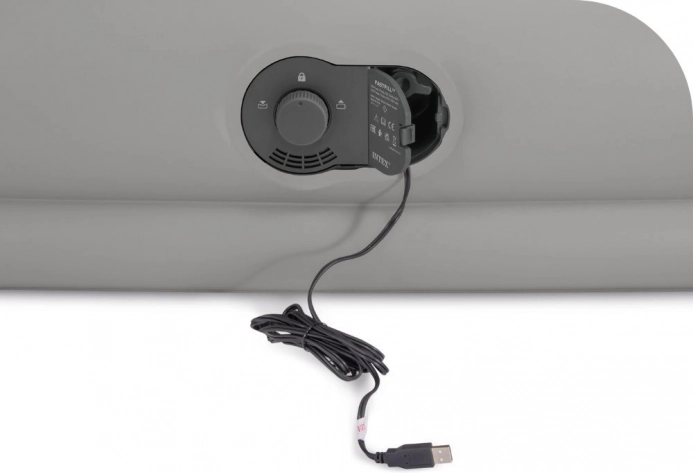 Pompa USB integrată 5V/2A umflă salteaua în aproximativ 240 de secunde. O alimentați ușor de la baterie externă, încărcător de telefon, port USB sau încărcător auto – ideală pentru acasă și în călătorii. Certificarea AirLock garantează etanșeitate și fiabilitate chiar și la utilizare frecventă.