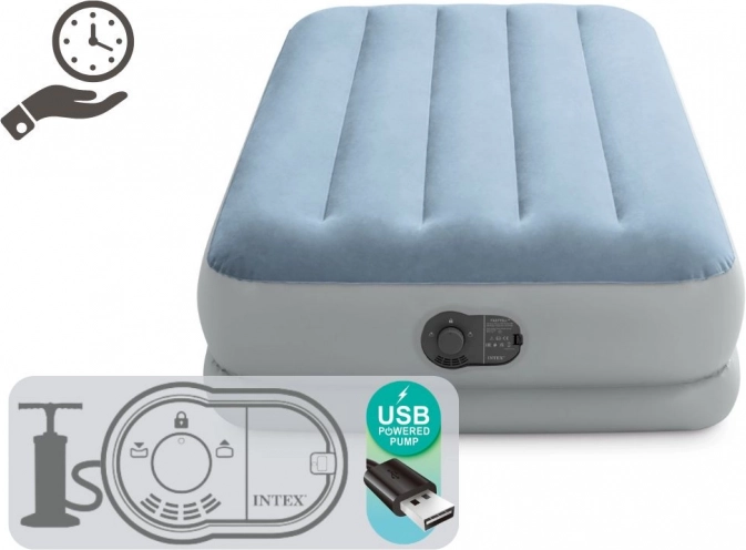 Căutați o soluție confortabilă pentru oaspeți, călătorii sau casă de vacanță? Salteaua gonflabilă Intex combină confort, stabilitate și mobilitate. Suprafața din velur este plăcută la atingere și împiedică alunecarea cearșafului, în timp ce camerele întărite Fiber-Tech și cadrul Dura-Beam oferă patului fermitate fără balans neplăcut.