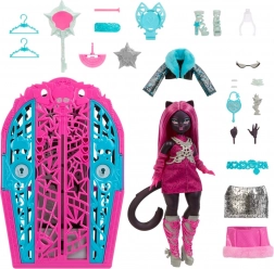 Dulapul-garderobă în formă de sicriu este detaliat, se închide și servește și ca spațiu de depozitare. Trăgând de talisman, păpușa este dezvăluită spectaculos – acest „moment wow” poate fi repetat la nesfârșit. Accesoriile stilate includ haine, pantofi, mănuși, ochelari și bijuterii, ce pot fi combinate liber pentru mai mult de 125 de variante de outfit.