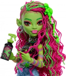 Descoperă vedeta vegetală a lumii MONSTER HIGH. Venus McFlytrap strălucește într-o ținută colorată cu imprimeu, pantaloni scurți din denim și pantofi cu platformă cu motiv de liane. Datorită membrelor articulate, păpușa poate fi ușor poziționată pentru a crea scenarii fanteziste pe care copiii le adoră.