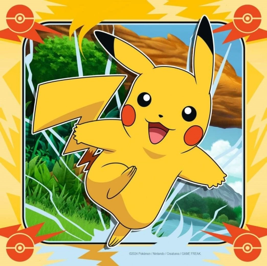 Puzzle pentru copii RAVENSBURGER Pokémon: 3×49 piese, execuție de calitate, piese precise și culori intense. Fiecare puzzle asamblat are dimensiunea de 21 × 21 cm.