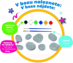 Descoperiți setul creativ pentru pictat pe pietricele, care le permite copiilor să transforme pietricelele obișnuite în opere de artă originale. Setul conține tot ce este necesar pentru a începe imediat – pensule, culori și pietricele, datorită cărora se dezvoltă imaginația, motricitatea fină și creativitatea. Potrivit pentru copii de la 4 ani.