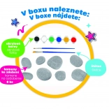 Acest set creativ distractiv pentru pictat pe pietricele este alegerea ideală pentru micii artiști și creatorii începători. Copiii pot crea ușor și jucăuș propriile decorațiuni colorate, mici cadouri sau ornamente pentru cameră. Cutia practică, cu dimensiunile 19 × 14 × 5 cm, este grozavă atât acasă, cât și în călătorii.