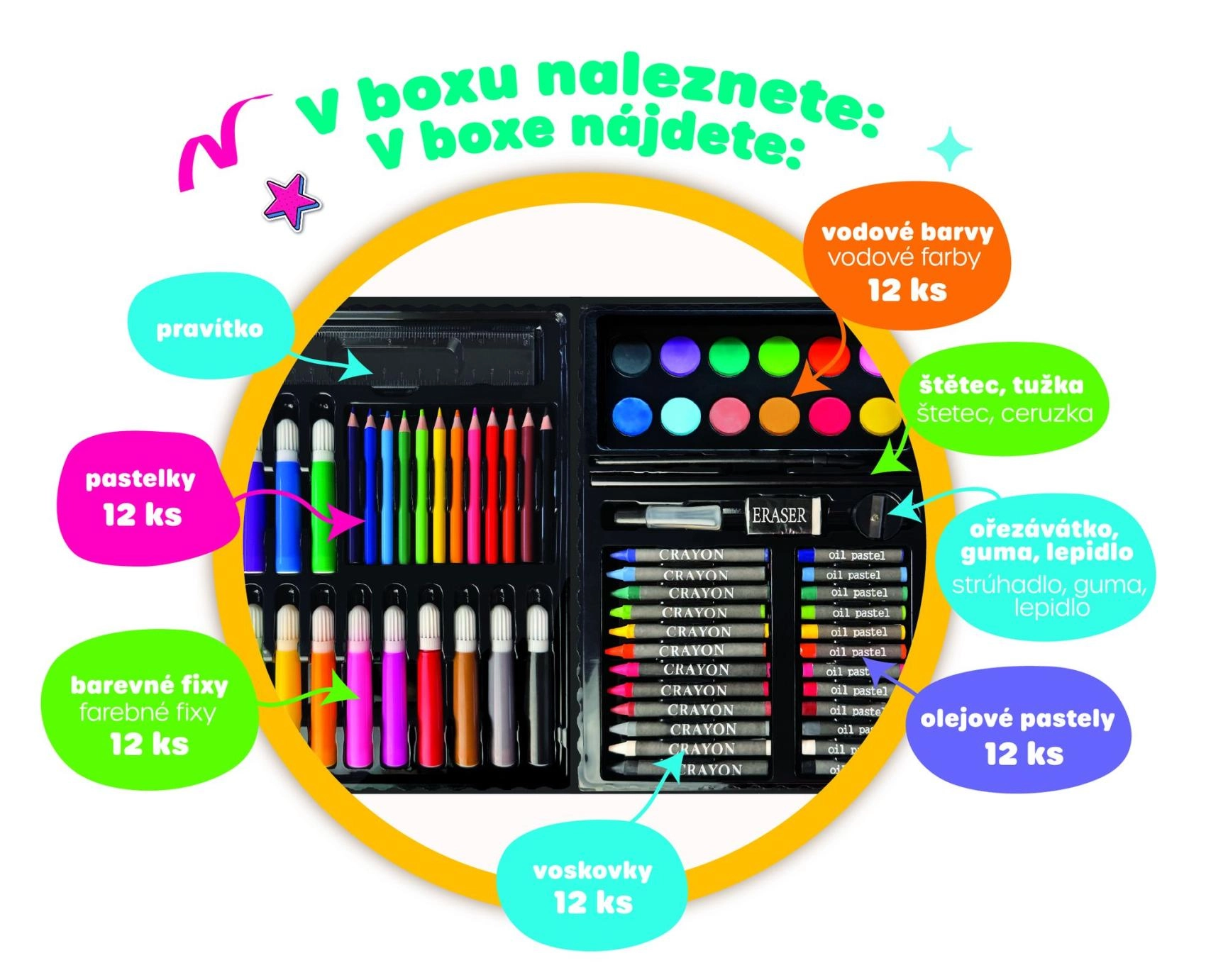 Cadoul perfect pentru copiii care adoră să deseneze și să descopere lumea culorilor. Setul oferă numeroase posibilități de creație și este primul pas în lumea artei.