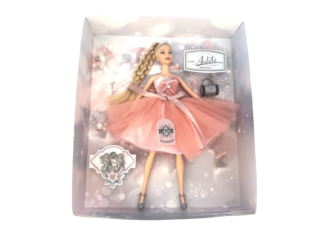 O păpușă adorabilă cu înălțimea de aproximativ 30 cm va deveni cea mai bună prietenă a oricărei fetițe. Are o rochie roz frumoasă, detalii fine și este ideală pentru joacă, schimbat de haine și inventat povești. O alegere excelentă pentru dezvoltarea imaginației și a jocului social la copiii de la 3 ani în sus.