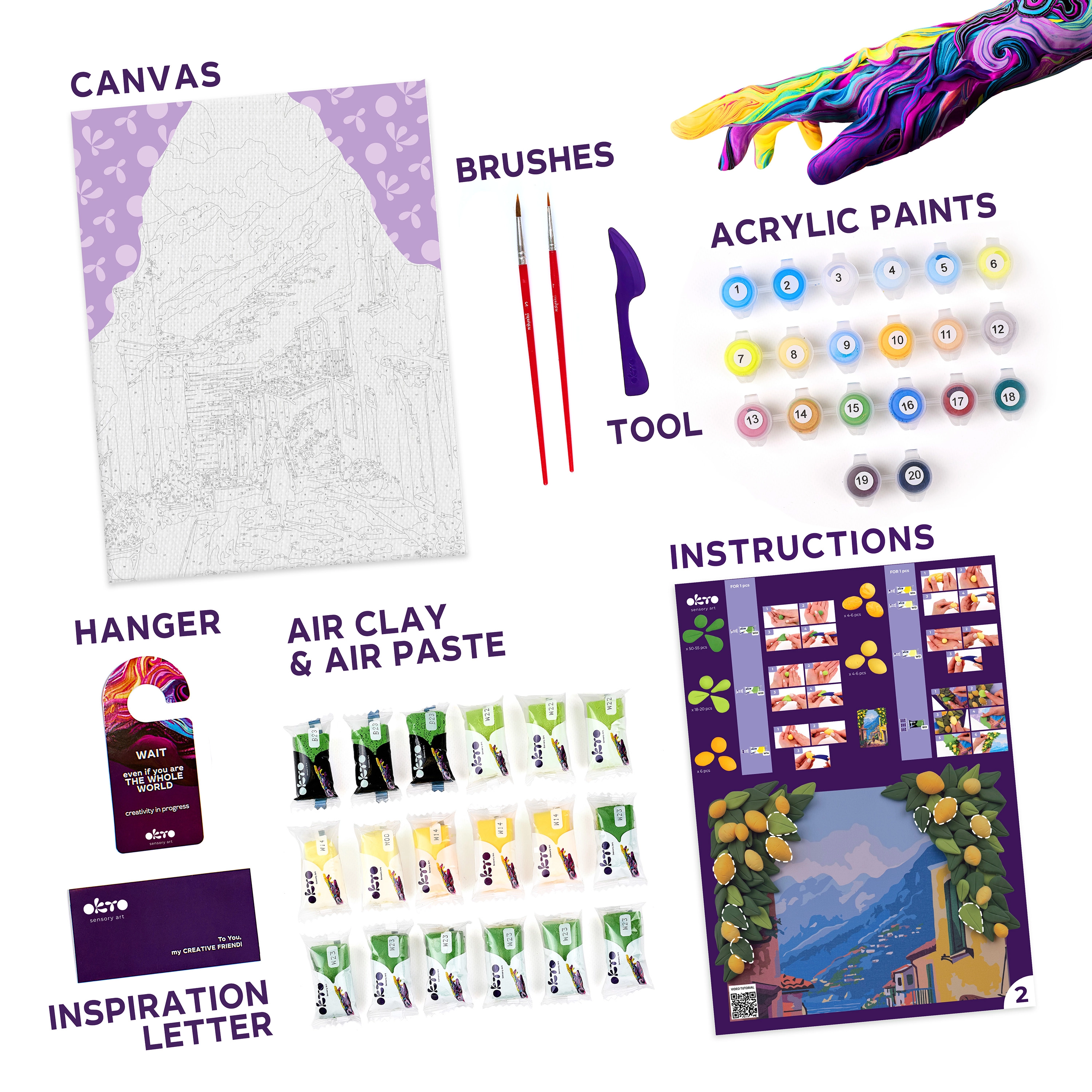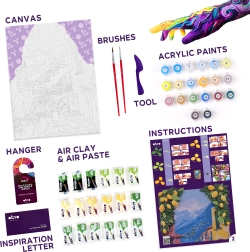 - Conținut complet: pânză, instrucțiuni ilustrate, unealtă de modelare, pastă de modelaj cu uscare la aer, set de culori, pensulă