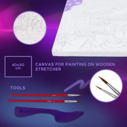 Pachetul conține tot ce ai nevoie pentru a crea – de la pânza pretipărită și culori până la pasta de modelaj și unelte. Procedeul este simplu și poate fi realizat chiar și de începători absoluți.