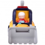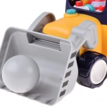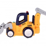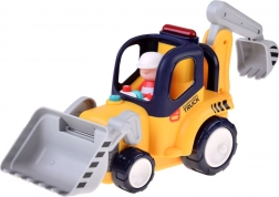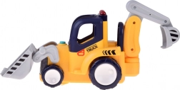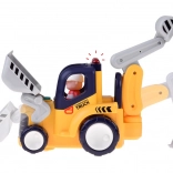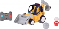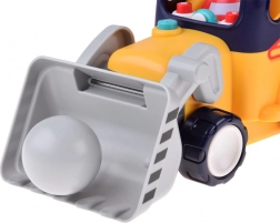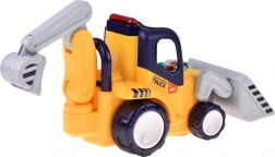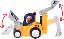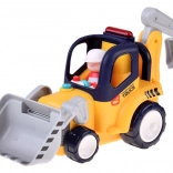 Modelul oferă mod automat cu funcția „lovește și pleacă” pentru mișcare autonomă și mod cu telecomandă cu control bidirecțional. Cupa frontală mobilă și cupă de excavare articulată declanșează sunete realiste. Include și o figurină șofer (activează deplasarea cu sunete și lumini) și o mingiuță pentru și mai multe posibilități de joc.
