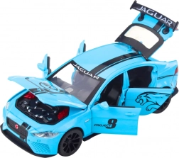 Model metalic stilat al mașinii JAGUAR în culoare albastră, care va încânta atât copiii, cât și colecționarii. Oferă uși, capotă și portbagaj deschizibile, efecte luminoase și sonore realiste și este gata de joacă imediat datorită bateriilor incluse.