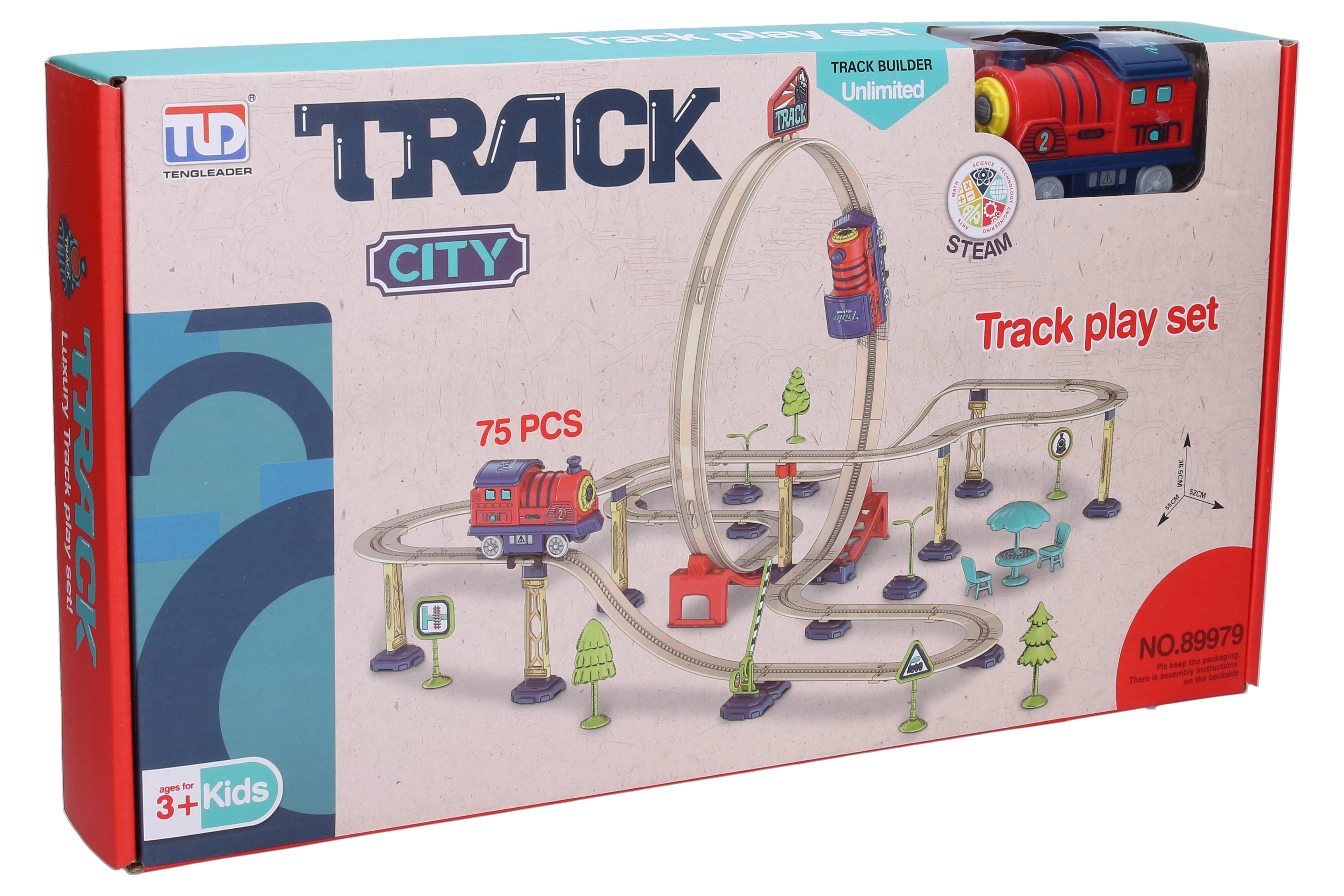 Această pistă de tren cu buclă este alegerea ideală pentru copiii care iubesc trenurile și cursele pline de acțiune. Setul conține tot ce este necesar pentru asamblare rapidă și control facil – locomotiva electrică pornește printr-o simplă apasare a coșului de fum. Datorită designului bine gândit, pista îmbină distracția cu dezvoltarea motricității fine și a creativității.