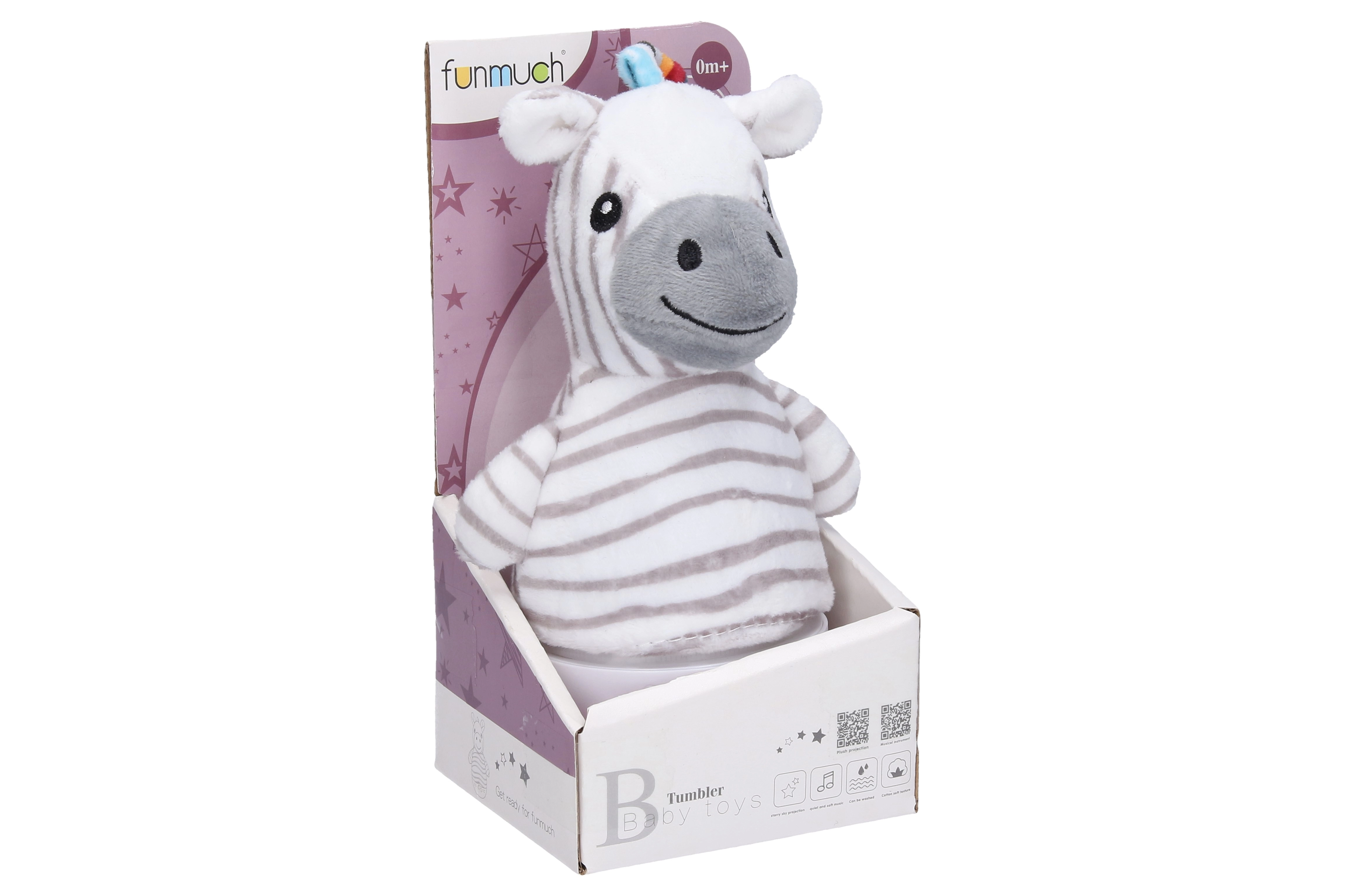 Zebră drăgălașă pentru adormit, cu dimensiunea de 16 cm, este ajutorul ideal pentru seri liniștite și un somn ușor. Oferă efecte luminoase și sonore, buton on/off ușor de folosit și buton separat pentru sunet. Alimentare cu 3× baterii AAA (nu sunt incluse).