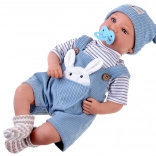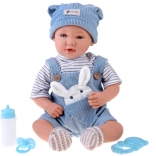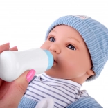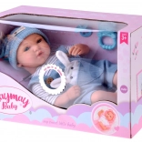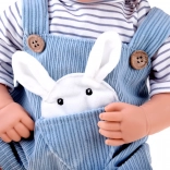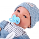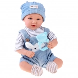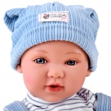 Păpușa interactivă tip bebeluș impresionează prin trăsături faciale realiste, gene lungi și ochi expresivi. Are corpuleț moale pentru îmbrățișări ușoare și cap plus membre din plastic pentru rezistență la joaca de zi cu zi. Ținuta stilată din catifea cord albastră se potrivește de minune cu tricoul în dungi și căciulița tricotată.