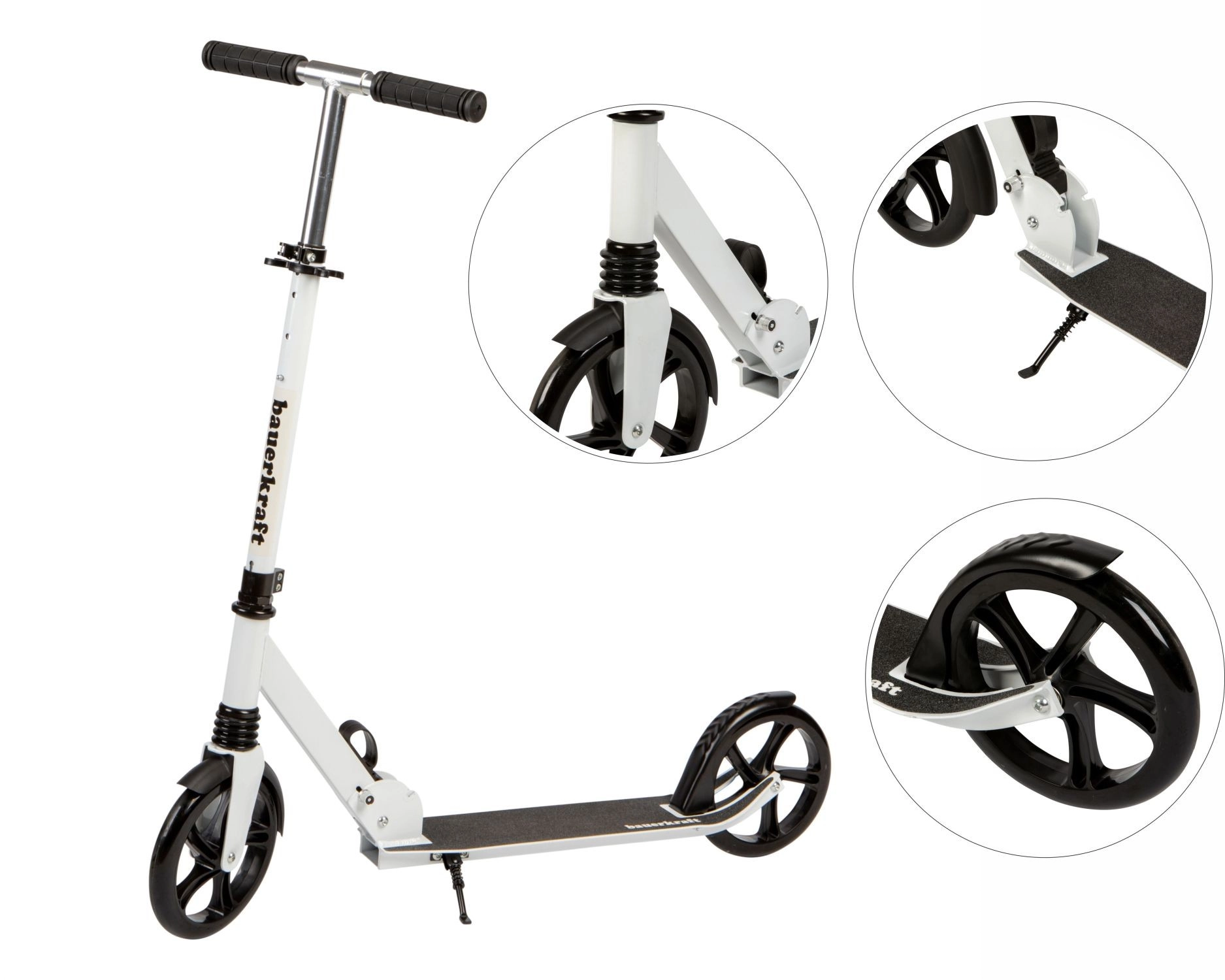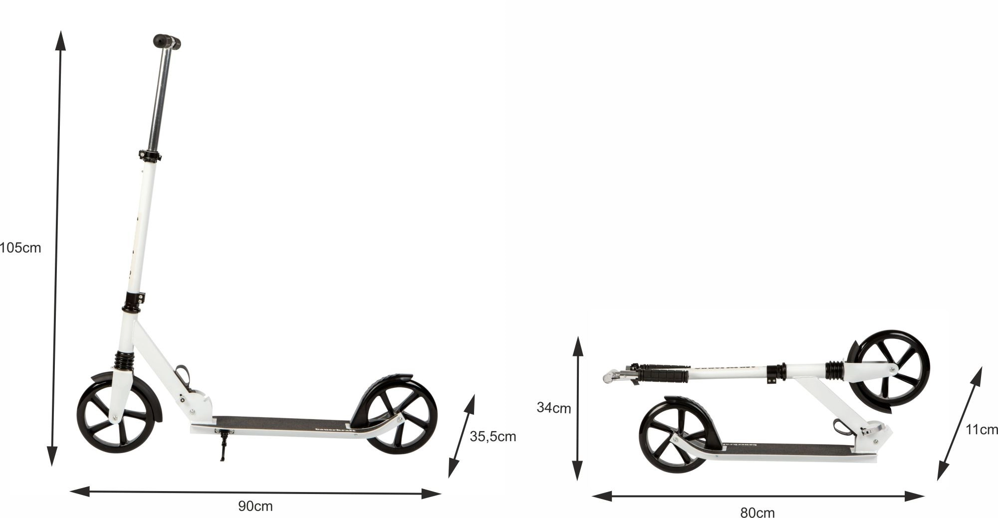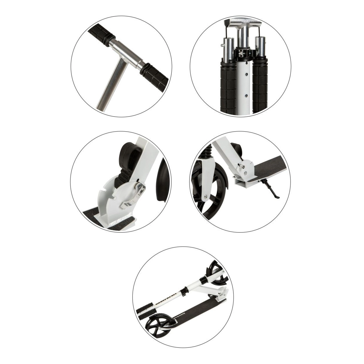 Trotinetă urbană ușoară și rezistentă pentru copii și adolescenți, oferă ghidon reglabil 95–105 cm, roți mari de 200 mm cu rulmenți ABEC-7, suspensie față și cadru pliabil din aluminiu. Pentru o deplasare sigură, include frână spate acționată cu piciorul, platformă antiderapantă și mânere ergonomice. Capacitate maximă 80 kg.