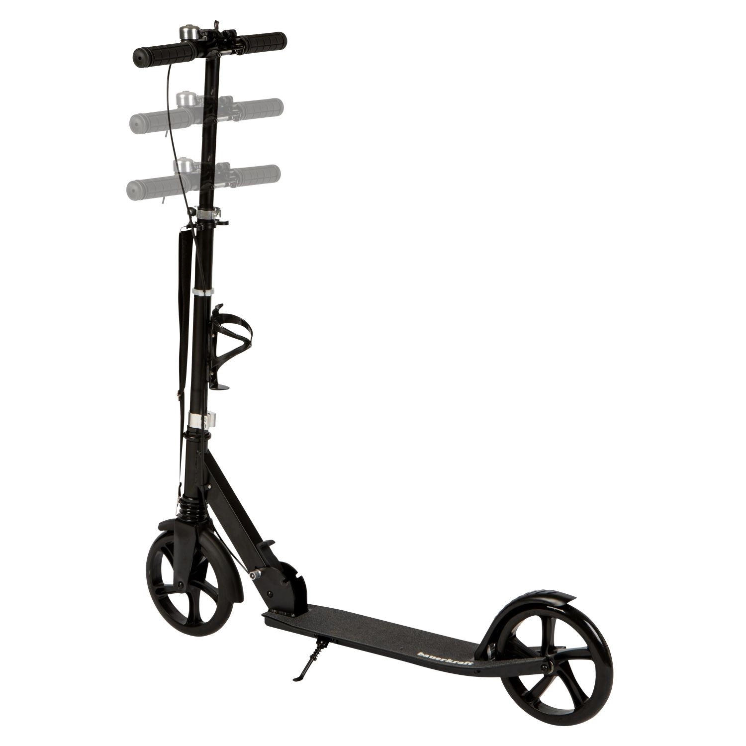 Ghidonul reglabil pe înălțime 95–105 cm „crește” odată cu utilizatorul și ajută la menținerea unei poziții ergonomice și sigure. Platforma antiderapantă, cricul, clopoțelul și aripa spate adaugă confort și siguranță în utilizarea zilnică. Suportul pentru sticlă este util pe trasee mai lungi, pentru a avea băutura mereu la îndemână.