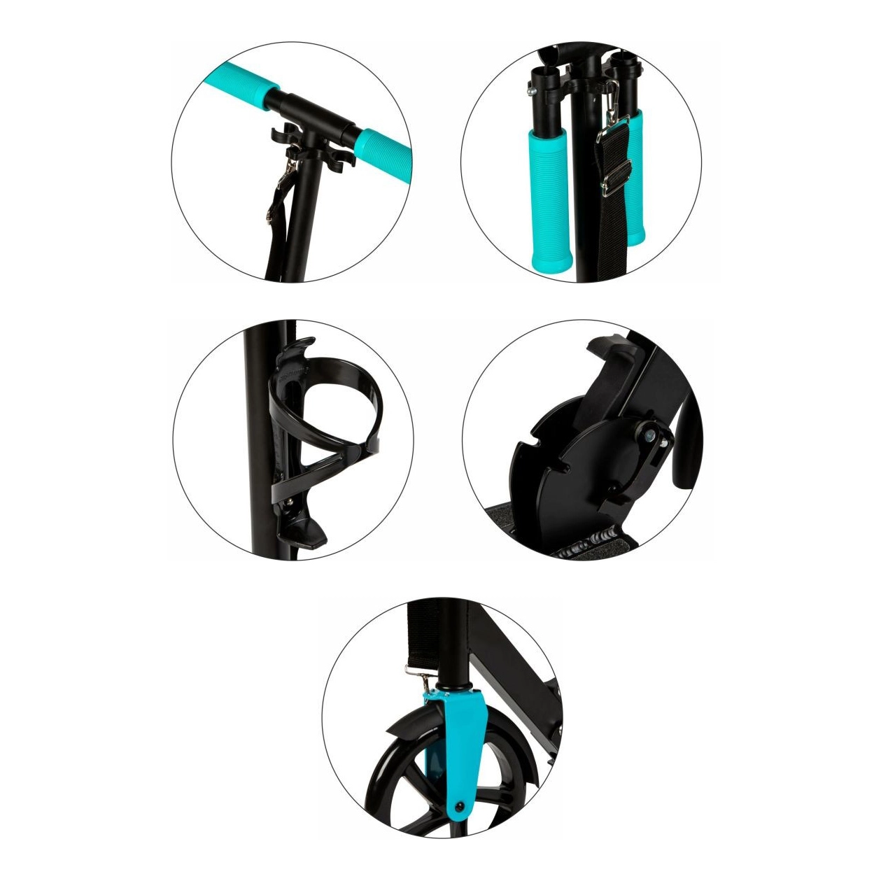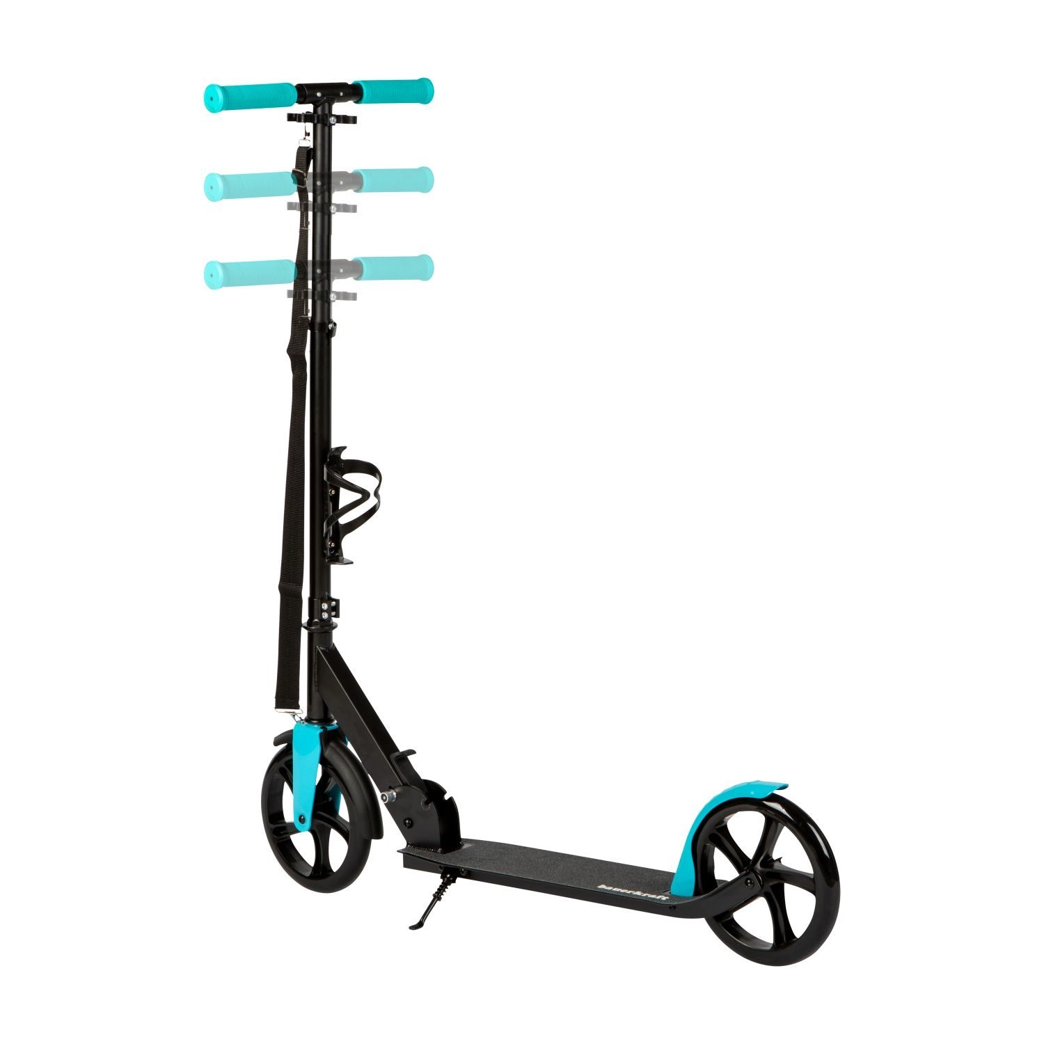 Trotineta crește odată cu utilizatorul – ghidonul reglabil în intervalul 91–101 cm asigură o ergonomie corectă și un control sigur la orice vârstă. Mânerele ergonomice antiderapante sporesc confortul și controlul, iar suportul pentru sticlă facilitează hidratarea pe traseele mai lungi.