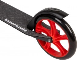 Frâna spate acționată la picior funcționează și ca apărătoare de noroi, iar mânerele ergonomice oferă priză fermă pentru un control mai bun în timpul mersului.