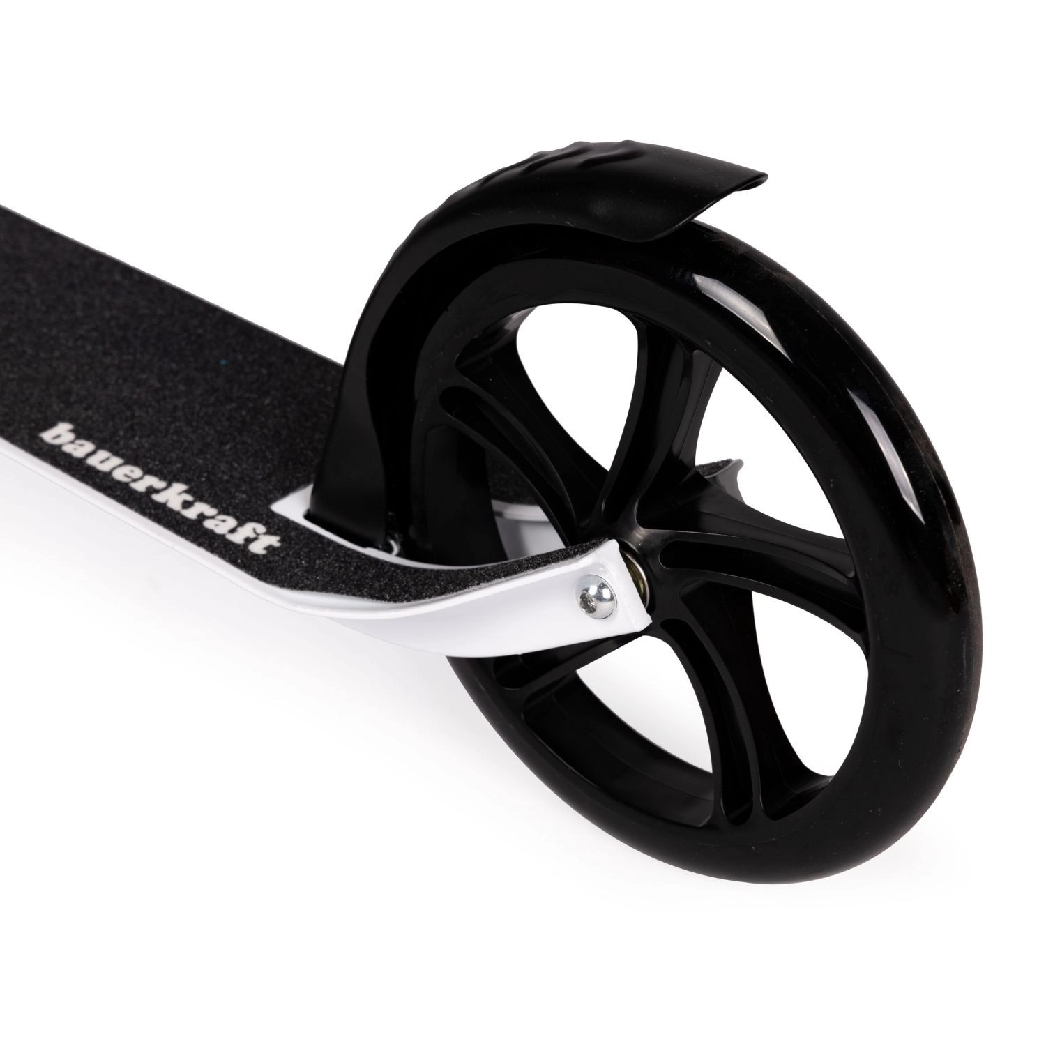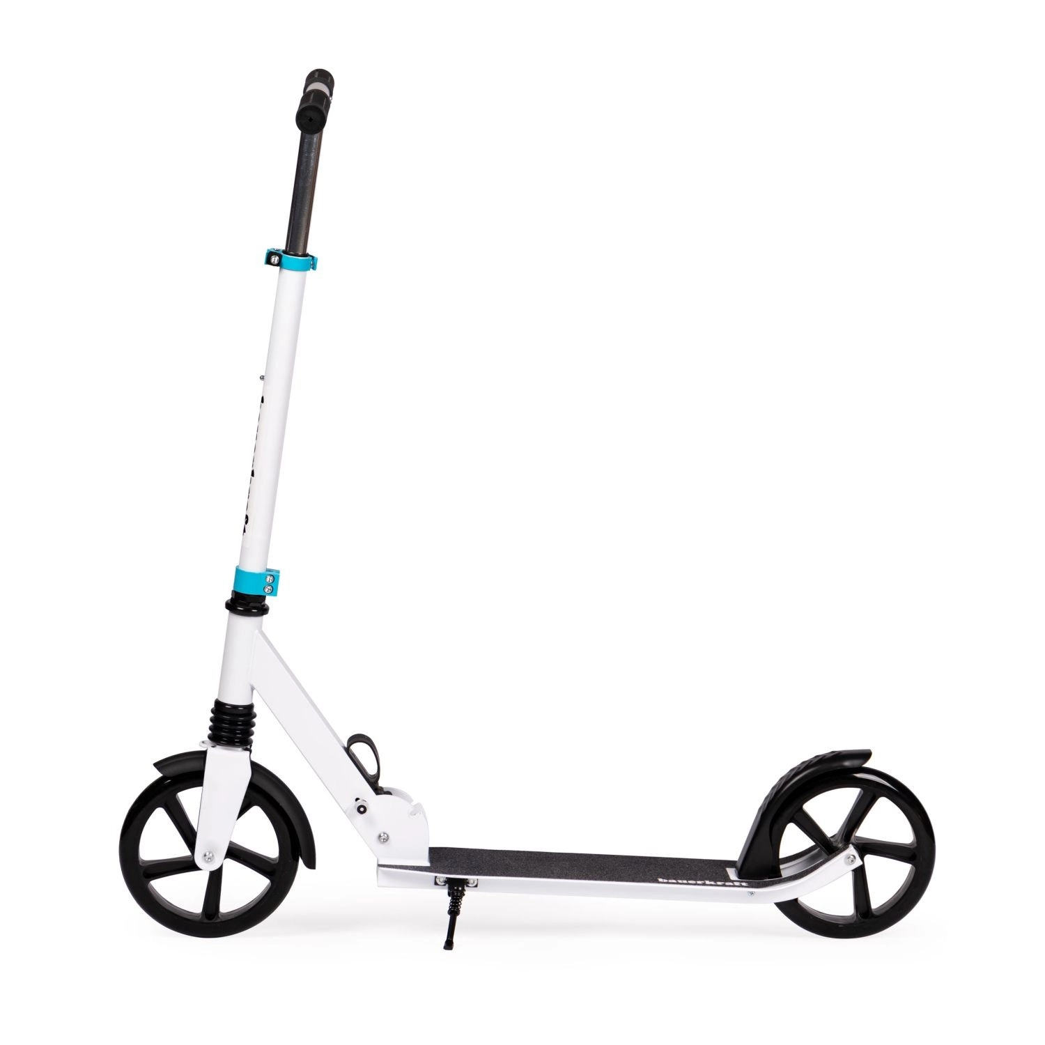 - Roți mari de 200 mm pentru stabilitate și viteză pe asfalt și piste de biciclete