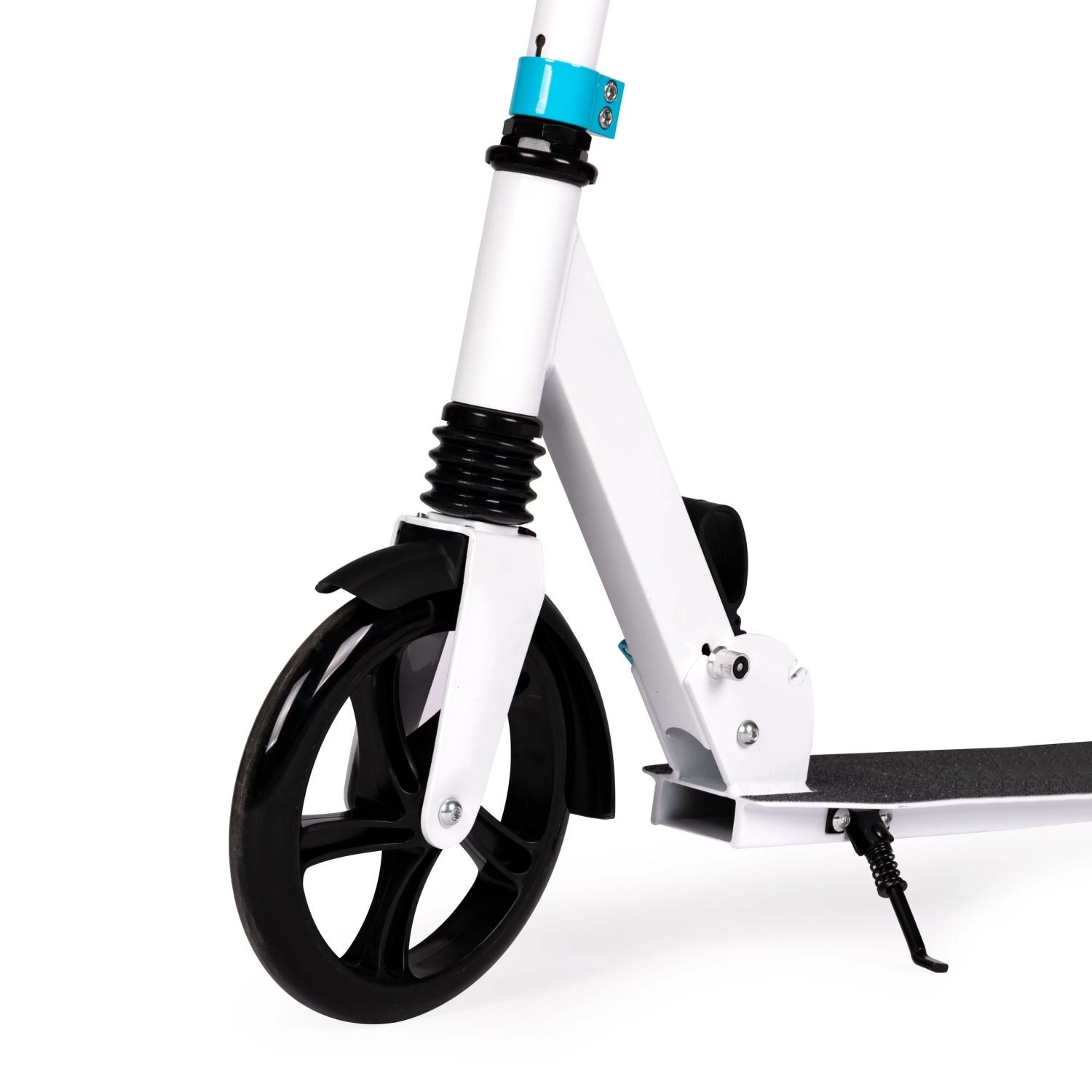 Această trotinetă urbană pliabilă este ideală pentru deplasările zilnice la școală și pentru plimbările în timpul liber. Datorită construcției din aluminiu este ușoară și în același timp robustă, suspensia față pe arc amortizează denivelările, iar rulmenții ABEC-7 asigură o deplasare lină și vioaie. Aripa spate cu frână sporește siguranța și protejează hainele de stropi.
