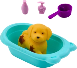 Set adorabil pentru micile îngrijitoare: păpușă, cățel și accesorii pentru baie. Atracția principală este cățelul interactiv, căruia îi dispar petele maro la contactul cu apa. Setul include cădiță cu „duș” și accesorii cosmetice pentru joacă realistă de îngrijire și dezvoltarea motricității fine și a responsabilității.