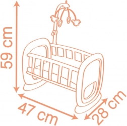Leagănul stilat pentru păpuși Baby Nurse oferă atât legănare lină pentru adormire, cât și un somn confortabil. Mișcarea blândă liniștește, iar caruselul rotit manual deasupra pătuțului susține ritualurile calmante de dinainte de somn. Ideal pentru dezvoltarea empatiei și a abilităților de îngrijire prin joacă.
