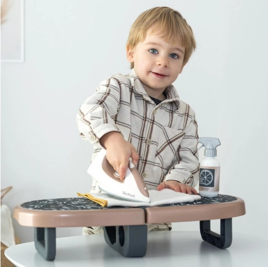 - Masă de călcat pliabilă, fier de călcat de jucărie TEFAL cu buton clic, sticluță cu pulverizator pentru copii