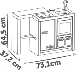 Această bucătărie stilată pentru copii, inspirată de tendințele actuale, va deveni inima camerei copilului. Datorită insulei și accesului din toate părțile, încurajează jocul în comun, dezvoltarea imaginației și a abilităților sociale. Copiii pot găti, servi și „face ordine” ca într-o bucătărie adevărată.