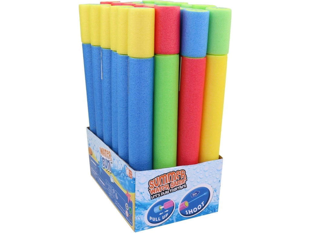 Bucură-te la maximum de vară cu această practică pompă de apă din spumă, cu dimensiuni de 35 × 4 cm. Este ușoară, sigură și ușor de folosit – ideală pentru copii de la 3 ani. Se livrează ca set de 24 de bucăți într-un display box în 3 variante de culori, fiind perfectă pentru familii, grădinițe și evenimente estivale. Materialul din spumă durabil asigură joacă în siguranță în apă și pompare ușoară pentru distracție fără sfârșit.
