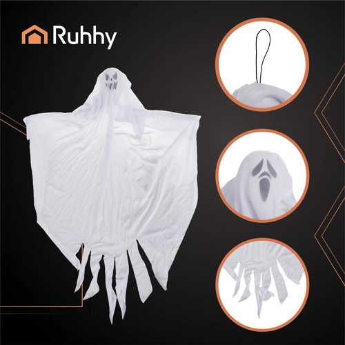 Creați acasă și în grădină o atmosferă înfricoșătoare cu setul de trei fantome atârnătoare RUHHY, cu înălțimea de 75 cm. Țesătura ușoară, albă, se mișcă în vânt și creează impresia unor apariții care levitează. Fiecare fantomă are o expresie diferită, ceea ce sporește autenticitatea. Ideal pentru Halloween, petreceri tematice, decorarea casei, grădinii și spațiilor comerciale, iar datorită agățării ușoare, instalarea durează doar un moment.