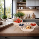 - Stabilitate pe masă datorită ventuzelor de pe bol și farfurie