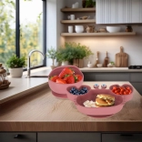 - Stabilitate fără dezordine – ventuze pe farfurie și pe bol.