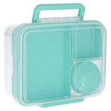 Trei compartimente separate și tăvițe detașabile păstrează mâncarea clar separată. Include un recipient rotund de 150 ml pentru dressinguri sau iaurt.
