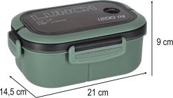 Cutia de prânz stilată și funcțională în nuanțe de verde oferă o capacitate de 1200 ml și o compartimentare gândită pentru transportul comod al întregului prânz. Datorită etajului detașabil cu 3 compartimente păstrați porțiile separate fără amestec de arome.