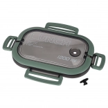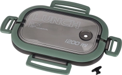 Capacul cu garnitură din silicon și patru cleme laterale asigură o închidere fiabilă, astfel încât mâncarea nu se va vărsa în geantă. Cutia este din plastic durabil, sigur, fără BPA și poate fi folosită în mașina de spălat vase și în cuptorul cu microunde (fără capac).