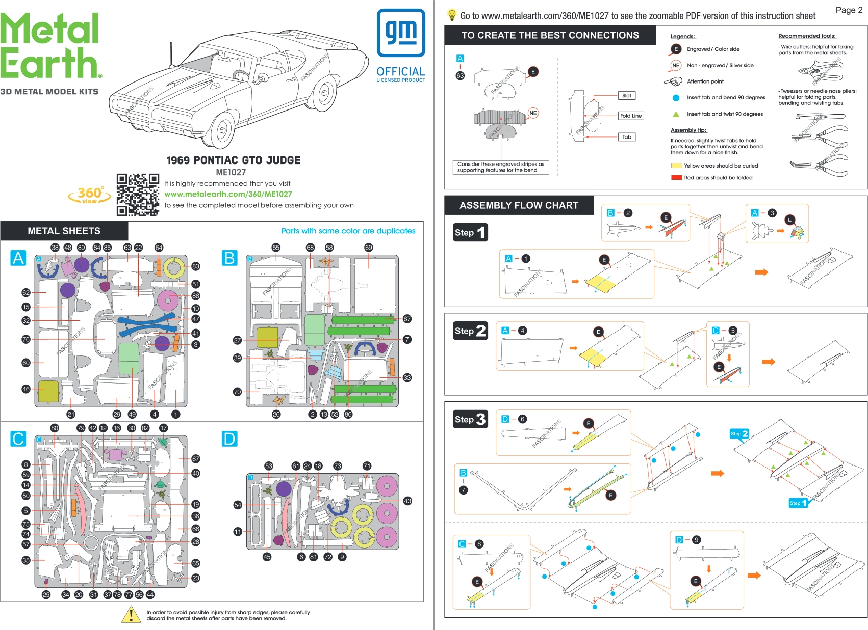 Bucură-te de o provocare creativă cu puzzle-ul 3D metalic METAL EARTH și asamblează legendarul 1969 PONTIAC GTO Judge. Din foițele pătrate de oțel desprinzi ușor piesele, pe care, datorită zăvoarelor inteligente, le îmbini într-un model fidel realizat cu numeroase detalii fine.