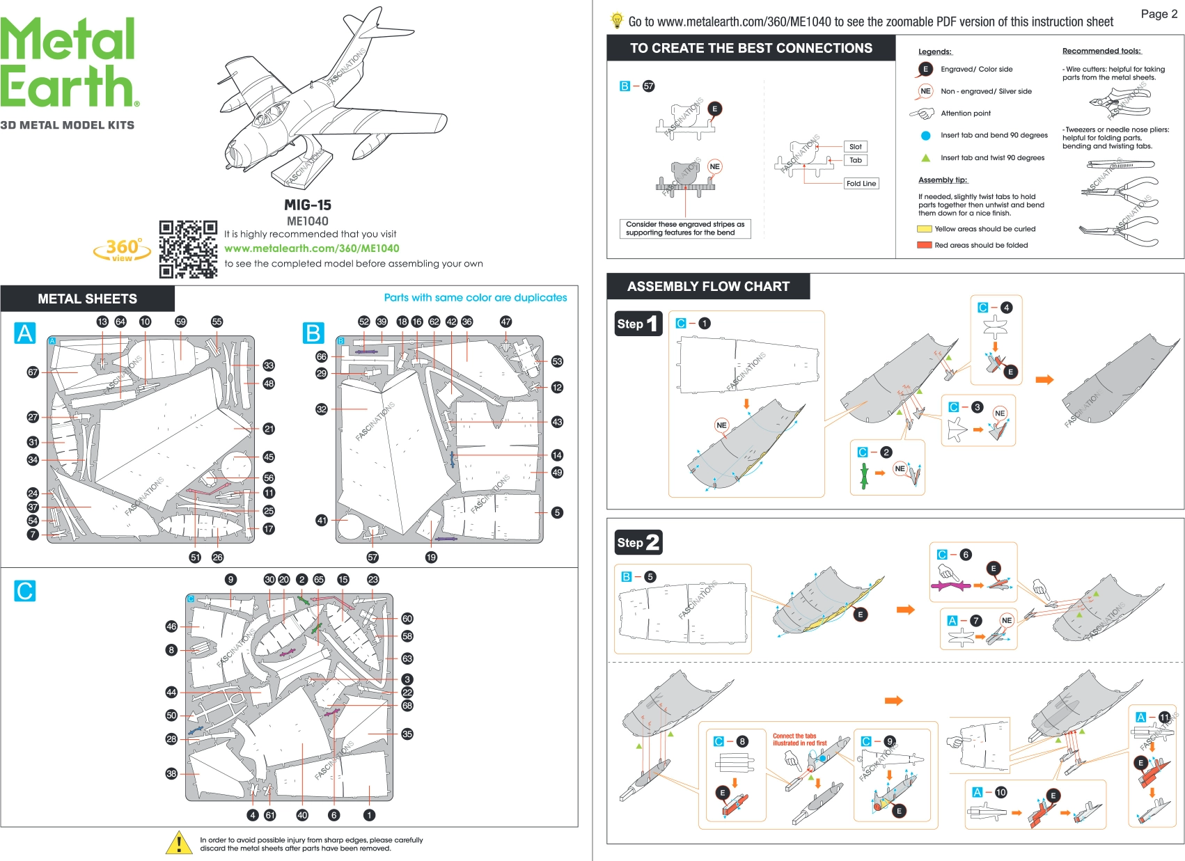 Fiecare piesă este marcată și decupată cu laser pentru acuratețe maximă. Cu ajutorul cleștilor subțiri îndoi ușor cârligele și unești treptat toate zăvoarele într-o structură solidă. Modelul final are un aspect realist datorită gravurii fine a panourilor, aripilor și cockpitului.